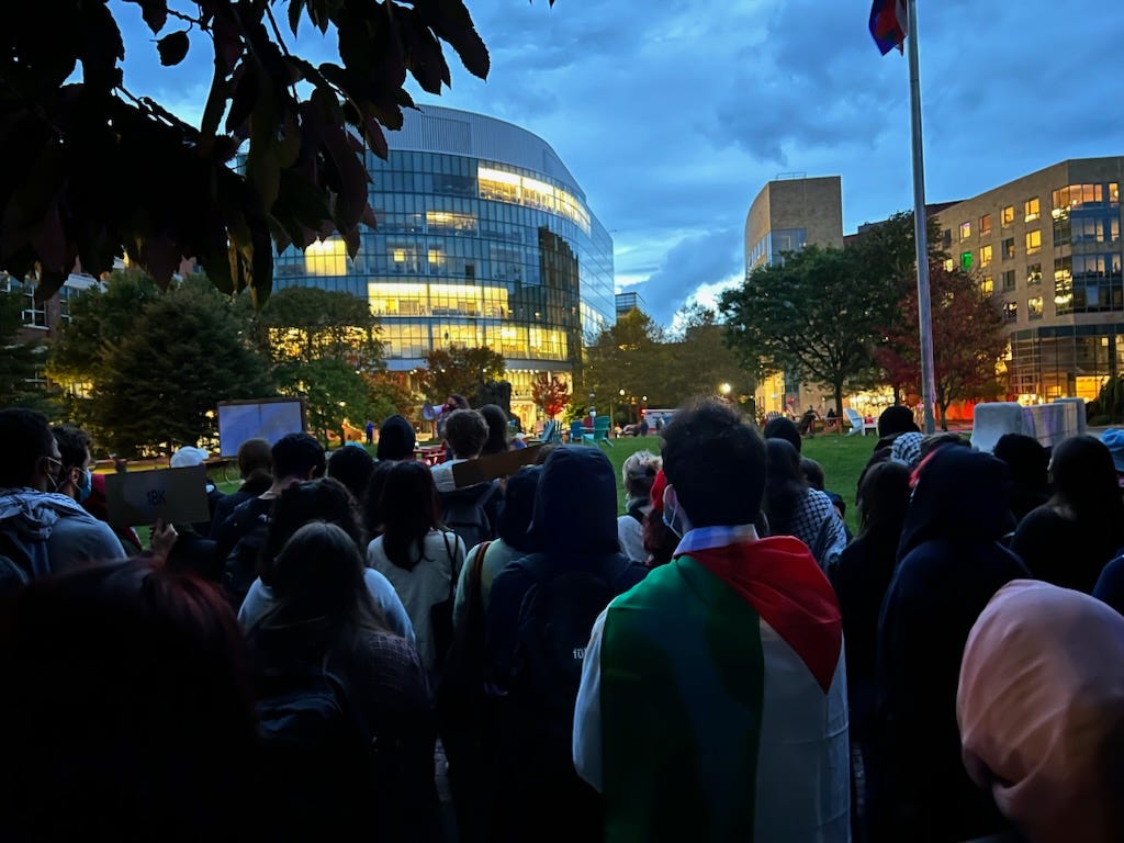 MH: We saw the statement from [President Aoun] and from different professors in general calling out the violence against Israeli civilians, and we haven’t seen that same energy when it comes to the Palestinian civilians, when the reality is it’s a much greater number of civilians that have been killed; Palestinian civilians are at 11,000 [now over 14,000] and the Israeli civilians are at 1,200. It’s just not a comparable reaction from the university. So, [the goal] is calling on them to be a little bit more consistent in terms of calling out the violence, but also in terms of protecting free speech. For universities to take down pro-Palestinian posters within less than 24 hours, it’s just very frustrating. It shows where the university stands in terms of genocide and free speech, and it’s very clear that free speech does not extend to speech that advocates for Palestinian rights and Palestinian liberation.